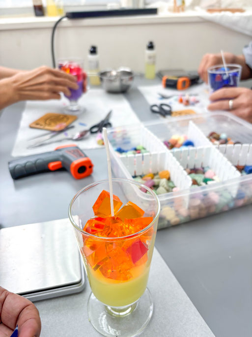 飲品蠟燭工作坊由參加者自行選擇、調色,可發揮創意創作出獨一無二的作品。